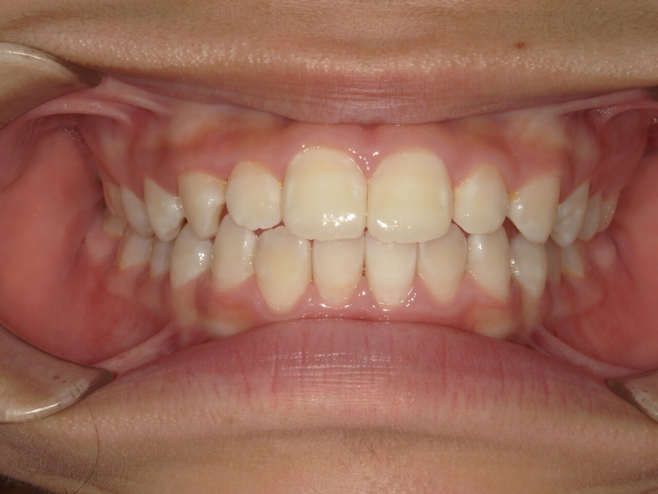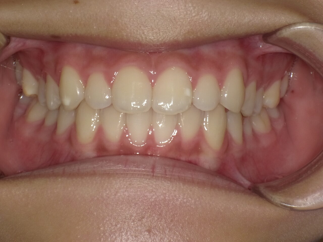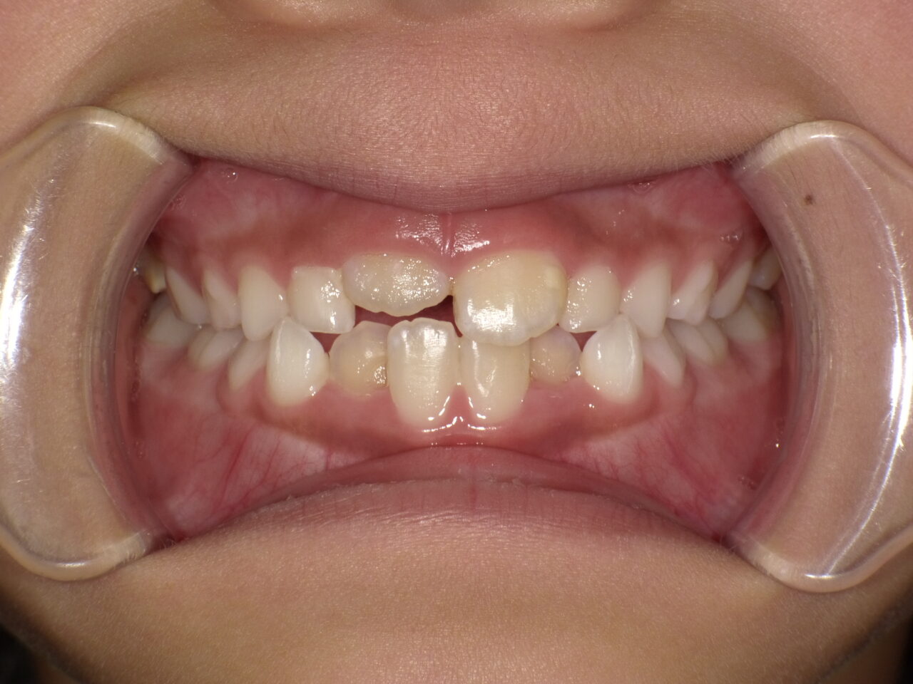 | デメリット・注意点 | 術前、臼歯部の咬合関係に大きな問題がなく、比較的低年齢から開始することにより顎の成長発育と筋肉の調和を図ることにより抜歯せず、簡単な器具の装着のみで並ばせることができます。 術後、新たな悪い癖が生じたり、筋肉と咬合関係のバランスが崩れることにより後戻りや新たな歯並びの悪化が生じることがあります。 |